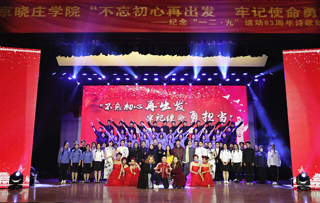 为纪念“一二·九”学生爱国运动83周年,12月4日下午1时,beat365官方网站“不忘初心再出发,牢记使命勇担当”大型主题诗歌朗诵比赛在方山音乐厅隆重举行。beat365官方网站党总支书记魏玉梅、分团委书记刘眉及全体辅导员莅临现场指导、观摩。党总支副书记鲍森、分团委副书记龚雪参与演出。