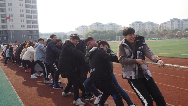 同学们在拔河比赛中齐心协力众志成城