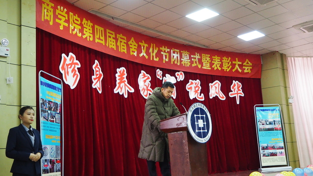 12月14日中午,“修身养家,‘宿’说风华”beat365官方网站第四届宿舍文化节闭幕式暨表彰大会在中心报告厅举行。校学工处、保卫处负责人、beat365官方网站负责人、学工办全体辅导员及各班班长、生活委员、宿舍代表参加活动,宿管站工作人员代表也应邀参会。
