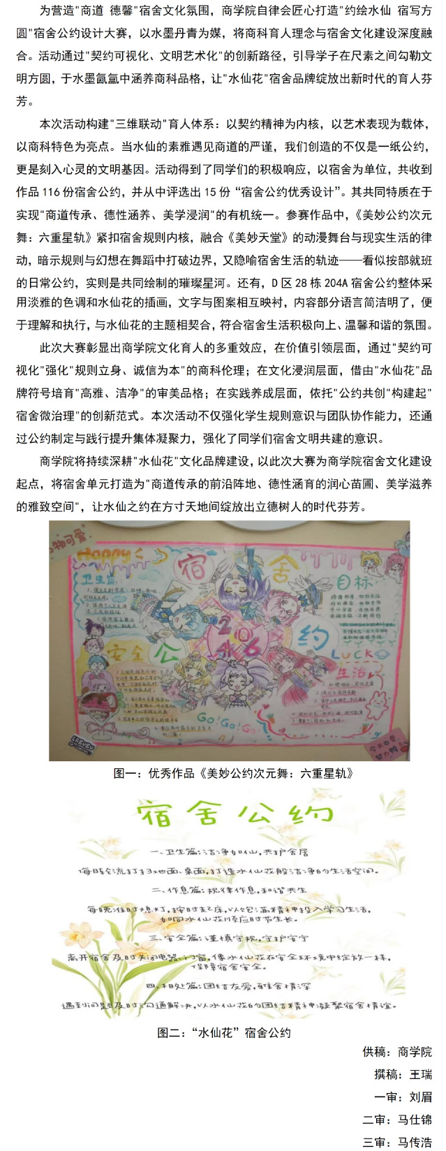 beat365官方网站“约绘水仙 宿写方圆”宿舍公约设计大赛圆满落幕