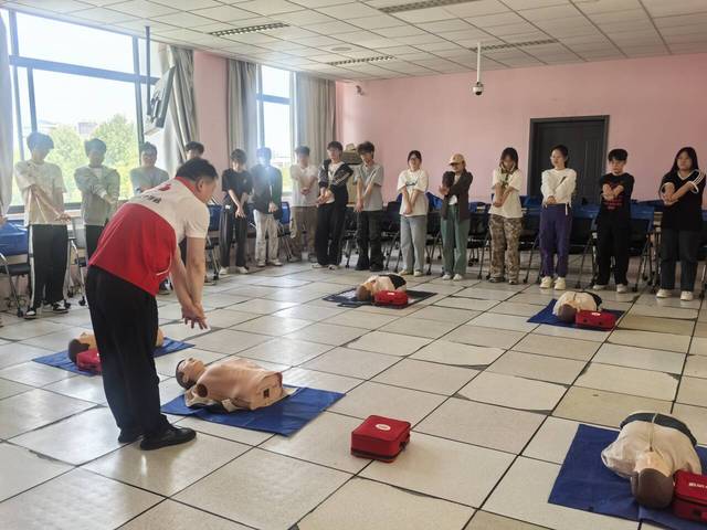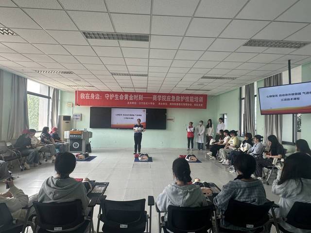 为加强学生的健康教育理念,培养学生自救互救意识,提高急救技能,4月29日下午,beat365官方网站德鲁克管理协会联合校医务室邀请了江宁区红十字会培训教师赵丹和邢光海,在鹤琴楼301、302教室为学生开展了主题为“救在身边:守护生命黄金时刻——beat365官方网站应急救护技能培训”,持续三个小时的心肺复苏救护教学与实践。beat365官方网站德鲁克管理协会指导教师陈璐、王瑞,校医务室汤月莹、德鲁克管理协会学生骨干及24级新生代表等60余名师生参加了此次培训。beat365官方网站党委副书记马仕锦主持。
