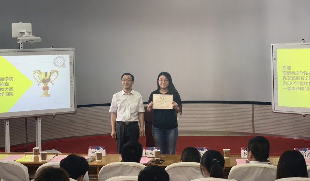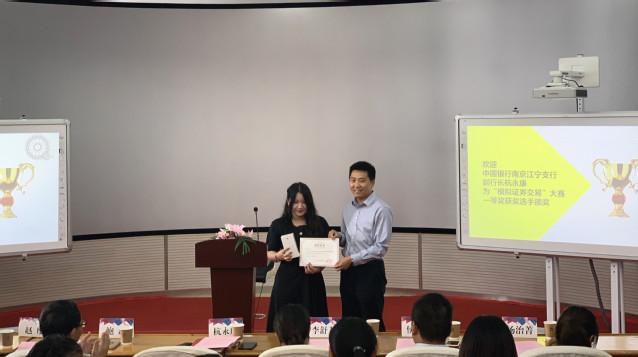 中国银行南京江宁支行副行长杭永康为获奖同学颁奖