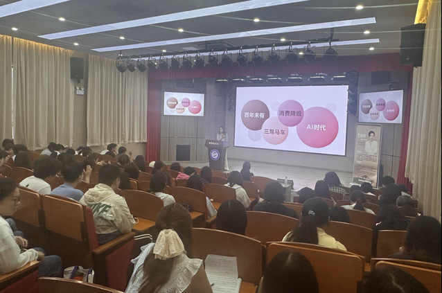 讲座中,包晶晶女士跳脱理论框架,以物流管理专业为切入点,系统拆解跨境电商、国际物流就业生态。她深入剖析了从供应链全链路管理到跨境物流出海机遇,从基层岗位“扎根积累”到战略层“价值交付”的职业发展路径。结合自身从“视客网络全球市场总监到独立创业”的历程,她以“过来人”身份向学子们强调:“择业要找准‘市场需求与个人优势’的交集,并勇于通过实践验证选择。建议多实习、有目标、紧跟时代、敢于担当。”