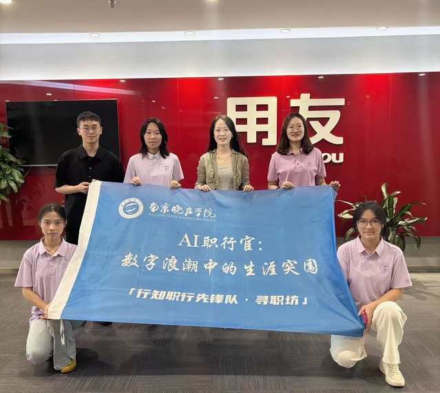 “行知职行先锋队”师生与用友江苏工作人员合影