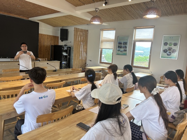 当日上午,实践团队首先来到素有“金陵古风第一村”美誉的佘村,调研当地文旅产业发展情况,并受到了当地村委会王亦天书记的热情接待。在王书记的介绍中,调研团了解到,佘村依托山水资源与历史底蕴,探索出“文旅 + 农业”融合发展模式,并以文旅产业激活闲置资源,利用闲置农房改造的“佘村十二食”民宿集群,以“一户一特色”吸引游客,周末入住率超90%。此外,佘村还培育了骑行、绘画、文创等主题的咖啡馆、创意餐厅等业态,进一步丰富了乡村旅游内涵。佘村的年旅游人次可达54.5万人,年总营业额达3500万左右。