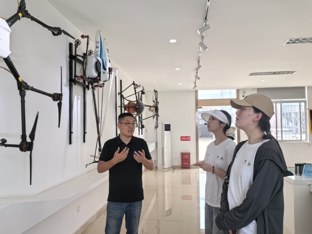 同学们参观艾津稻园无人机展馆