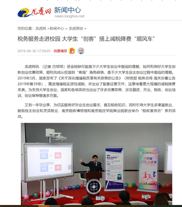 【龙虎网】 税务服务走进校园 大学生“创客”搭上减税降费“顺风车”