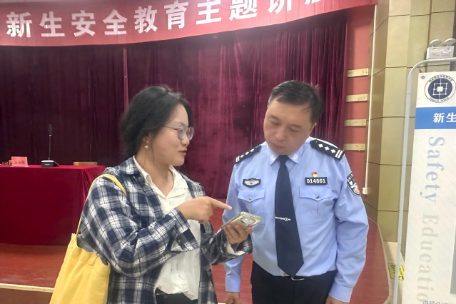 讲座中,戴瑞峰副所长结合现实反诈最新案例,重点剖析了当前大学生群体中高发的四类电信网络诈骗类型:游戏账号交易类、刷单兼职类、冒充熟人类和虚假购物类。他通过展示真实数据和播放诈骗流程还原视频,提醒新生不轻信“高额回报”、不点击陌生链接、不泄露个人信息,牢记“不转账”是硬道理,引导新生从思想上筑牢“反诈防骗”的安全防线。