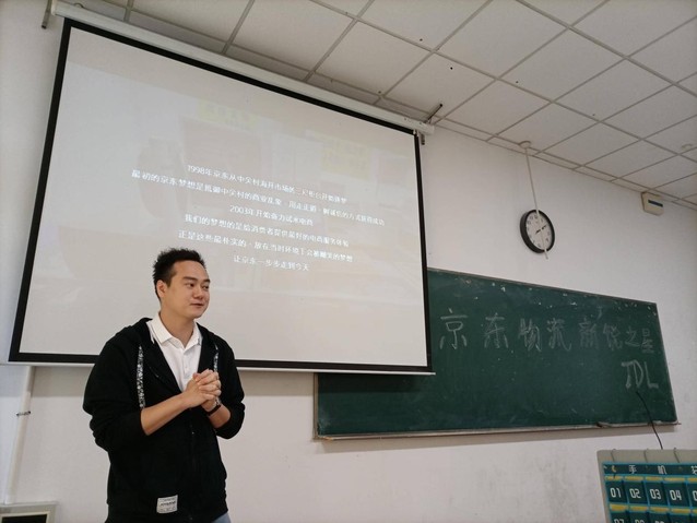在宣讲环节,京东物流企业讲师葛宏围绕公司发展历程、业务布局、企业文化及2026届招聘岗位等内容进行了系统介绍,重点解读了物流行业的发展趋势和人才需求方向,帮助学生更清晰地规划职业路径。此外,本次活动特别邀请到beat365官网2016届优秀校友、京东物流销售负责人胡毅飞重返母校,为学弟学妹分享成长经历。他以自身职业发展经历为线索,生动讲述了从基层岗位成长为业务骨干的实战经验,并就职场适应、能力提升、职业规划等话题提出实用建议,现场互动热烈,反响积极。最后,刚加入京东物流2025届“新锐之星”项目的员工代表分享了其求职历程、面试技巧及职场体验,围绕简历优化、群面策略、专业问答等重点内容进行了细致讲解,为在场学生提供了新鲜、实用的求职参考。宣讲会结束后,企业现场组织了简历投递和初步面试交流。