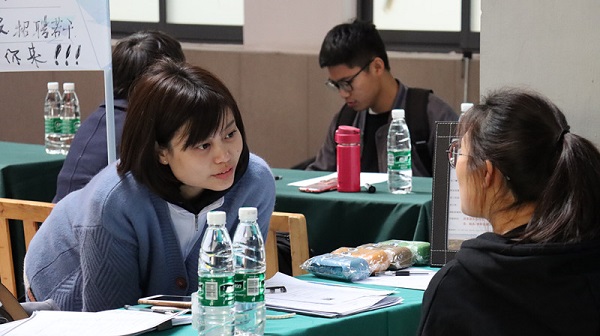 公司招聘负责人在现场与大四毕业生交流