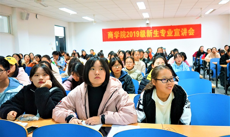 会上,各专业老师围绕各自专业属性、人才培养方向、课程设置、发展与就业前景为学生们进行了一一介绍,行管教研室的高振杨老师还以大量毕业生的学习和就业实例,为同学们指明了未来方向。宣讲会开始前,谢吉晨副院长为同学们介绍了专业分流的基本情况,告知同学们分流要根据高考成绩及期末考试成绩,按照排名和平行志愿的方法进行专业的划分;最后,给同学们提出了四条关于专业选择的建议:理性看专业的好与坏、兴趣是最好的老师、学习成绩是硬道理以及扬长避短。现场19级新生们听的聚精会神,纷纷表示受益匪浅。