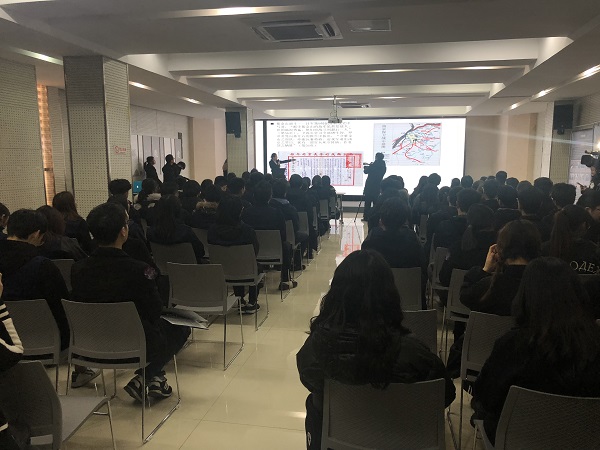 寻访过后,同学们来到花神庙社区服务中心,聆听江苏省社科院历史所副研究员张慧卿讲述《南京大屠杀史》一书,她以一名研究者的视角为同学们介绍了南京大屠杀前后的残酷史实。南京报业集团副总编辑、作家陈正荣分享了《紫金山下的二月兰》一书,他根据自己二十多年跟踪采访经历,讲述了二战日本军医山口诚太郎为谴责日本侵华、倡导中日和平, 将南京的二月兰带回家乡的故事