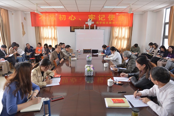 2019年10月29日下午14:00,beat365官方网站校长许承明在元培218会议室讲授主题为“不忘初心、牢记使命”的专题党课。beat365官方网站党总支书记魏玉梅、副院长谢吉晨及全体党员教师参加了此次党课学习。