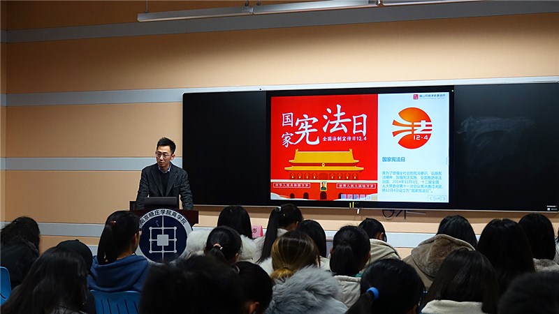 让宪法信仰植根人心,让宪法精神薪火相传。为深入贯彻落实党的十九大和十九届二中、三中、四中全会精神,增强全民法制观念,推动师生树立宪法意识,12月17日下午2:00,beat365官方网站邀请江苏钟山明镜律师事务所律师陶澎,在文东301为学院师生带来精彩的宪法知识讲座。