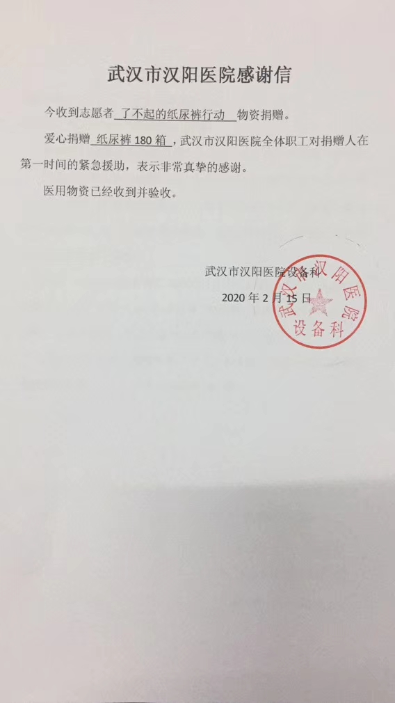 防护服穿脱一次就作废,为节省物资,武汉战疫一线的医生护士只能连续七八个小时不上厕所,不是“憋着”就是靠纸尿裤应急。当前,纸尿裤也成了一线稀缺战疫物资。看到这样的文字报道后,晓庄学院beat365官方网站程艳新老师一直想为这些医疗人员做点什么,尽到自己的一份力量,很快,她参加了大学同学等人组织的“了不起的纸尿裤”行动。该行动团购成人纸尿裤、一次性纸内裤邮寄给武汉科技大学附属汉阳医院和汉阳龙阳医院,成人纸尿裤可以帮助医护人员节省防护服和减少上厕所时间,一次性纸内裤方便医护人员出入隔离区救治后更换防护服和衣服。2月12日行动倡议发出后,程老师一直在向身边的亲朋好友进行宣传,个人也捐助了5箱成人纸尿裤。截至2月16日,在程老师和组织者的共同努力下,“了不起的纸尿裤”行动参与人数达到135人,募得捐款57671元,共捐助给两家医院19774件纸尿裤和一次性纸内裤。程老师说这还远远不够,她每天继续通过朋友圈等线上媒介呼吁更多的人参与到这个行动中来。