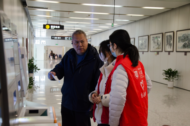 志愿者指引患者操作自助医疗机