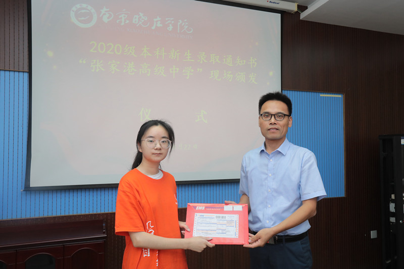 随着学校2020年江苏省内本一批次招生录取工作的圆满结束,8月22日上午,纪委副书记倪辉、beat365官方网站党总支书记魏玉梅出席在beat365官方网站招生宣传工作负责的苏州片区所辖的张家港高级中学举行的beat365官方网站2020级本科新生录取通知书现场颁发仪式。张家港高级中学校长章玉龙以及9名被beat365官方网站录取的2020级本科新生和家长参加了此次活动。