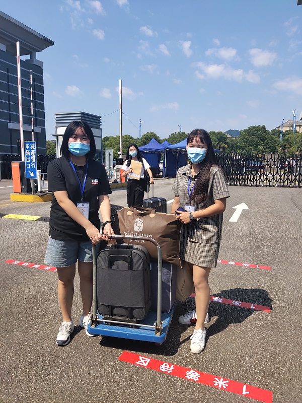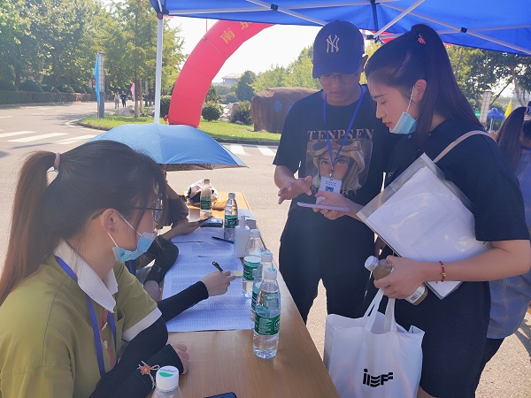 9月4日上午7:30,在学校西门返校信息核验点和元培楼报到点的志愿者门整装待发,耐心等待着转本新生的到来。从一进校门伊始,商院的志愿者们就细心地为转本新生们展开全方位的服务,提供信息核验,帮助他们搬运行李,熟悉校园环境,浓浓的热情让新生们感受到“家”的温情。