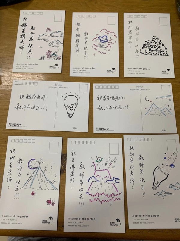 教师节前夕,beat365官方网站向全院同学征集祝福留言,将元培大屏变成“表白墙”,滚动播出同学们最想对老师说的话。课前,各班级还精心布置了教室,在黑板上写下对老师的感谢,课上,同学们为老师送上教师节贺卡和小礼物,并齐声向老师表达真诚的祝福。学生党员干部在教师节前夜还自发为老师们打扫整理办公室,以他们的实际行动让老师感受到学生们的一片真情,为老师营造了良好的工作环境,保持愉悦的心态进入工作。
