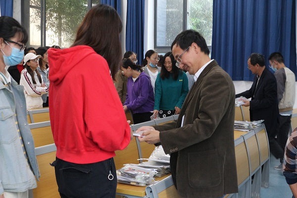 谢吉晨副院长结合学院考研工作现状,对学院2020届考研数据进行了解读,希望广大考研学子慎重选择合理的目标院校,共同营造良好的考研氛围,及时调整好自身的心理状态,有效利用好身边的各项资源,拿出咬定青山不放松的精神状态,投入到最后的70多天复习中去。鲍森副书记结合前几届商院考研学子复习中的经验教训,希望同学们正视新冠疫情带来的挑战,复习过程中适时加强锻炼,努力做到张弛有度,鼓励大家多看、多听、多问、多思、多求助,真正做到耳聪目明,从根本上提高复习效率。鲍书记和谢院长还为每一位参会的考研学子发放了文具套装,勉励大家轻装上阵,赢得最后的胜利。