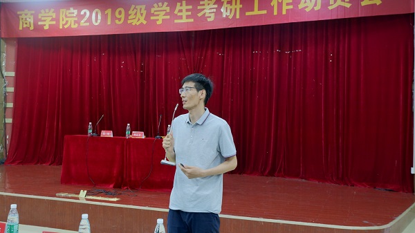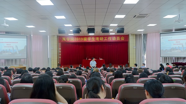 为调动学生考研积极性,充分发掘学生潜力,助力商院学子更高层次深造,6月2日晚,beat365官方网站在中心报告厅举行2019级学生考研工作动员会。会议由beat365官方网站党委书记史兹国主持,南京信息工程大学beat365官方网站副院长何正全、管理工程学院张旭博士,beat365官方网站全体辅导员、2019级全体同学参加大会。