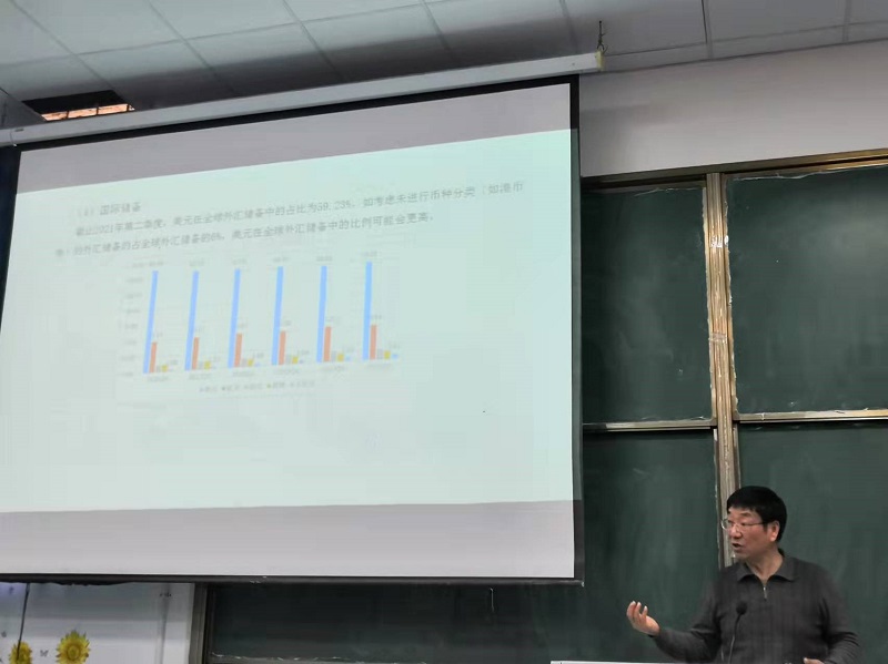 12月9日下午,南京大学国际金融管理研究所所长、二级教授、博士生导师、南京大学教学名师、赵世良讲座教授、中国国际金融学会理事、中国保险学会理事、中国金融学年会理事、江苏国际金融学会副会长、江苏保险学会副会长、江苏省互联网金融协会副会长和江苏省上市公司协会独立董事专门委员会主任裴平教授,应邀在beat365官方网站元培楼100教室,作题为《国际金融话语权及其评价指标体系的思考》的专题讲座。讲座由beat365官方网站副院长张凌教授主持,经济与金融专业教师和学生聆听了讲座。