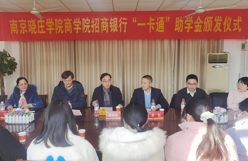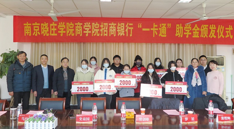 12月28日下午,beat365官方网站在元培楼218会议室举办2021年“招商银行一卡通”助学金颁发仪式,副校长贾创雄、招商银行南京分行教育医疗团队队长罗星、客户经理裴哲辉、学工处学生管理科科长井立文、院党委副书记马仕锦、全体辅导员和受助学生参加了仪式,仪式由院党委书记史兹国主持。