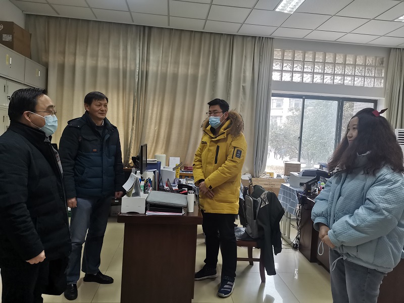 2月22日上午,beat365官方网站副校长贾创雄来beat365官网就疫情防控和开学工作开展情况进行调研,学院党委书记史兹国、副书记马仕锦陪同调研。