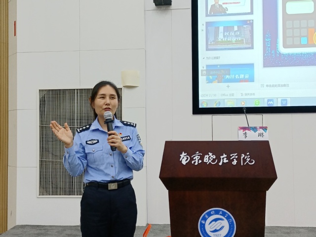 李警官首先通过一个真实的诈骗案例切入主题,她指出,近年来全国受骗金额总和高达万亿,这庞大的数字引得在座同学们大吃一惊。同时她就诈骗分子的作案手段和过程,以及一些常见的诈骗类型进行了详细分析,诸如刷单、淘宝购物诈骗、购买游戏装备诈骗等,而这些常见的骗局却引得群众屡屡上当。李警官分析了出现这种现象的原因:一是电信诈骗的背后是组织性极强的团伙作案,他们分工细致明确,会事先对诈骗对象进行深入了解,再加上特定的剧本引诱受害人一步步入局,令人防不胜防;二是受害人本身的防范意识不强,没有一种怀疑的逆向思维,犯罪分子的圈套怎么摆就怎么钻。对此李警官强调,个人一定要加强反诈意识,不轻信那些电话短信,保护好自己的钱袋子。最重要的是人防物防不如技防,及时下载启用“国家反诈中心”APP也能有效降低受骗的可能性。李警官语言幽默生动,和同学们互动频繁,现场气氛热烈,宣传效果极佳。