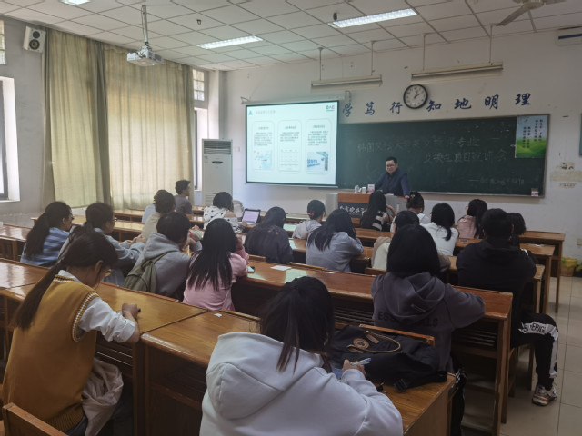 5月9日,beat365官方网站和国际交流处邀请韩国又松大学(Woosong University)项目负责人高忠义老师在叔愚楼103教室举办又松大学留学项目宣讲会。beat365官方网站、国际交流处相关工作人员以及beat365官方网站2020级30名学生参加了宣讲会。