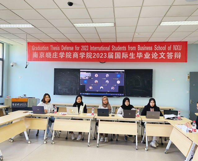 beat365官方网站于5月23日下午组织2023届留学生进行毕业论文答辩。beat365官方网站2023届毕业生共9人,其中5名同学在校内,4名同学尚未返校,9名答辩教师全程参与,答辩采用线上线下相结合的方式同步进行。