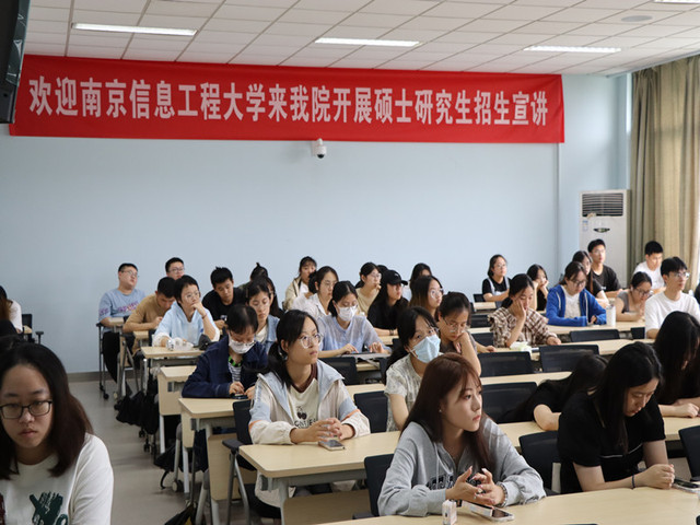 本次宣讲主要分为四个方面。首先,汪峰老师介绍了南京信息工程大学的学校概况,包括建校历程、学校使命、名师集锦、重点专业、学科建设和学校项目等内容。第二,学院概况,包括师资情况和教学团队。他说到,南京信息工程大学beat365官方网站拥有雄厚的师资力量,近些年在科学研究方面取得瞩目的成绩,为学生提供顶尖的科研平台和教研平台,在实践教学方面与华为等国内知名公司建立了校企实习基地。第三,硕士学位点,汪峰老师结合学院硕士点历年分数和招生人数,分专硕和学硕两部分进行了细致讲解,并鼓励有志青年未来攻读博士。第四,政策保障,汪峰老师提供了各个硕士点的备考要点,学校保障和奖学金政策。最后,汪峰老师提供了2024届研究生招生群和导师的联系电话,并与到场学子互动答疑,现场氛围热烈浓重。