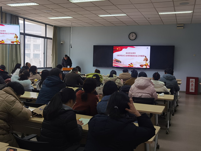 马仕锦副书记介绍了分工会换届改选工作的筹备情况,对分工会委员候选人和代表候选人产生的过程作出详细说明。大会通过了选举办法,表决通过了监票人和计票人名单。选举以无记名投票的方式进行,刘眉、柳莹、陈培文、齐鹏程、赵星、桑小娟、孙兴盛等7名同志当选新一届分工会委员会委员。全体委员表示一定不负厚望,不断创新载体,开展更多让教职工喜闻乐见的活动,把分工会工作不断推向新的高度。