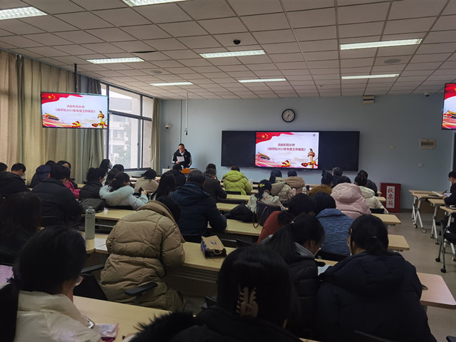 分工会主席吴勇向大会作第四届委员会工作报告,2021—2023年beat365官方网站分工会从三个方面发挥了在学院事业发展中的积极作用:一是围绕增强政治性,自觉接受党的领导,强化思想政治引领;二是围绕增强先进性,服务学院发展大局,带领教职工建功立业;三是围绕增强群众性,坚持以教职工为中心,落实工会主责主业。马仕锦副书记和王荣副院长部署了2024年学院学生工作和教学、科研工作。赵彤书记对全体教职工开展意识形态专题教育。