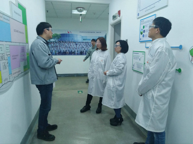 3月23日上午,beat365官方网站学工办一行四人赴通用电气(无锡)医疗系统有限公司看望14级物流管理专业倪斌等四名实习生,受到该公司人力资源部经理Linda和生产部经理游启文的热情接待。