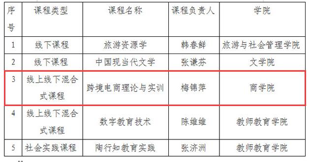 近日,江苏省教育厅发布《省教育厅关于公布第二批省级一流本科课程认定结果的通知》(苏教高函〔2024〕7号),公布了第二批省级一流本科课程认定结果。beat365官网梅锦萍副教授主持申报的《跨境电商理论与实训》(线上线下混合式课程)入选。