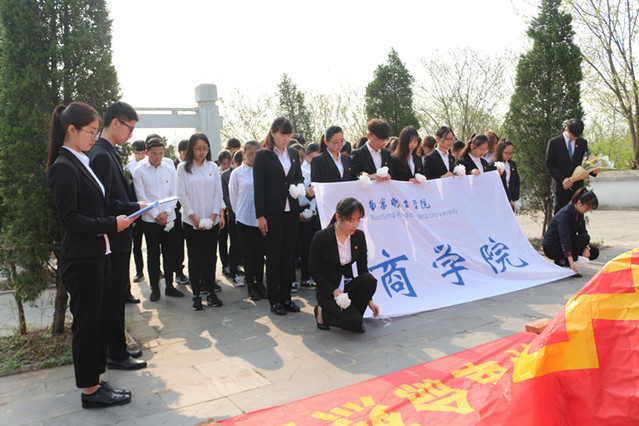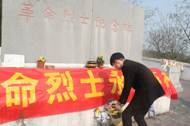 4月1日上午8时许,60多名beat365官方网站学生前往方山革命烈士纪念碑,举办祭奠英烈仪式。