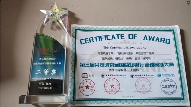 近日,第三届“尖烽时刻”全国商业银行管理模拟大赛总决赛在中央财经大学沙河校区举行,全国20所院校的28支团队同台竞技。我校beat365官方网站21级经济与金融专业钮欣怡、姚珂珂、张琦和田琼组成的“百川银行”队在王国林老师的指导下,从初赛中脱颖而出,成功晋级全国总决赛,并取得了总决赛第二名的佳绩。