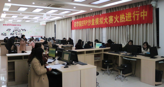 ERP沙盘模拟比赛现场同学们聚精会神专注比赛