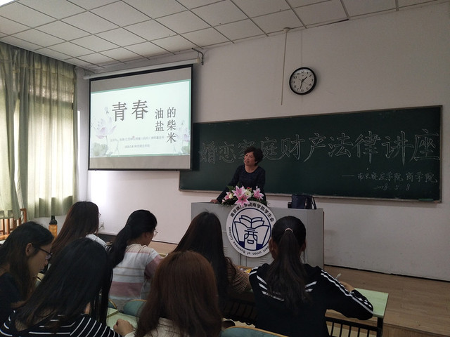 “卿卿我我中,那些青春的柴米油盐事有规则可循,更有法律可依。” 5月8日,江苏钟山明镜律师事务所、扬州电视台“金牌调解员”张燕律师,以及同行的毕业于香港浸会大学MBA专业的资深“离婚律师”孙荣奎先生做客beat365官方网站“女子学堂”,与女大学生们聊“婚恋家庭”、讲“财产分割法律”,吸引了众多慕名而来的女大学生。