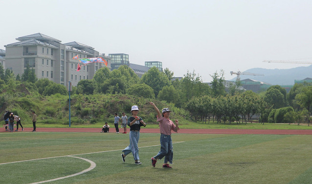 参赛队伍代表在操场上进行风筝放飞