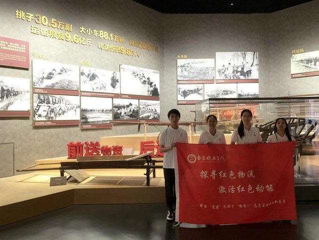 陈毅元帅曾说过这样一句话:淮海战役的胜利是人民群众用小车推出来的。本次“红色物流”实践团队充分挖掘淮海战役中人民群众协助运输物资的“红色物流”历史。淮海战役中,解放军共动员民工543万人,参战部队60万人,平均9位民工支援一位战士作战。另有成千上万的人民群众在后方担负起各项支线任务,形成男女老少齐上阵、家家户户忙支前的群众性支前运动。淮海战役时间长、消耗大、变化快,后勤保障任务十分繁重。解放区筹集的粮食,来自四面八方的广大农村和遥远的大后方,交通不便,运输工具落后,运输任务基本以手推、肩挑的方式完成。有的粮食运到前方需要经过小车、火车、船只、汽车、扁担的7次转运和装卸,方能运送到前线战士们的手中,后方出动大小车共计88.1万辆,把它们排列起来,从南京到北京可以排成两排。广大支前民工用手推、肩扛的方式往前线运输了9.6亿斤粮食、数百万吨炸药,出动20.6万副担架,共完成数十万伤员的转送任务,广大人民群众付出了常人难以想象的艰辛。遇到雨雪天气,他们就把自己的蓑衣、雨衣