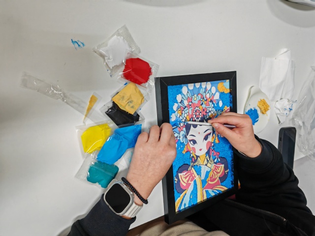 本次活动提供了丰富的制作材料,包括纸浆、七本针、镊子、底板等,其中底板设计融入了龙、京剧脸谱等国潮中国风元素,旨在通过艺术创作传承中国传统文化。在老师的精心指导下,学生们迅速掌握了纸浆画制作的技巧和要点。他们热情高涨,利用小镊子和七本针,通过挑、放、压、拨、扎等手法,将不同颜色的纸浆细致地铺叠在底板上,每一处细节都透露出对工艺的尊重与热爱。在创作过程中,同学们不仅体验到了传统工艺的独特魅力,更深刻感受到了非遗文化的深厚底蕴。随着时间的推移,一幅幅色彩斑斓、立体感强烈的国潮纸浆画逐渐呈现在大家眼前,成为本次活动的亮点。