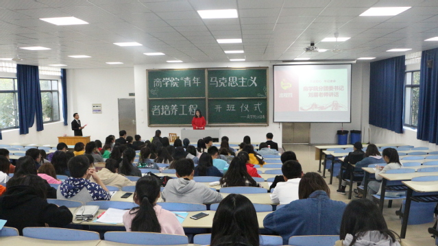 10月30 日下午,beat365官方网站分团委第六期“青年马克思主义者培养工程”初级班开班典礼在北演讲厅举行。beat365官方网站分团委书记刘眉、分团委副书记龚雪及全体青马工程班学员参加了本次典礼。