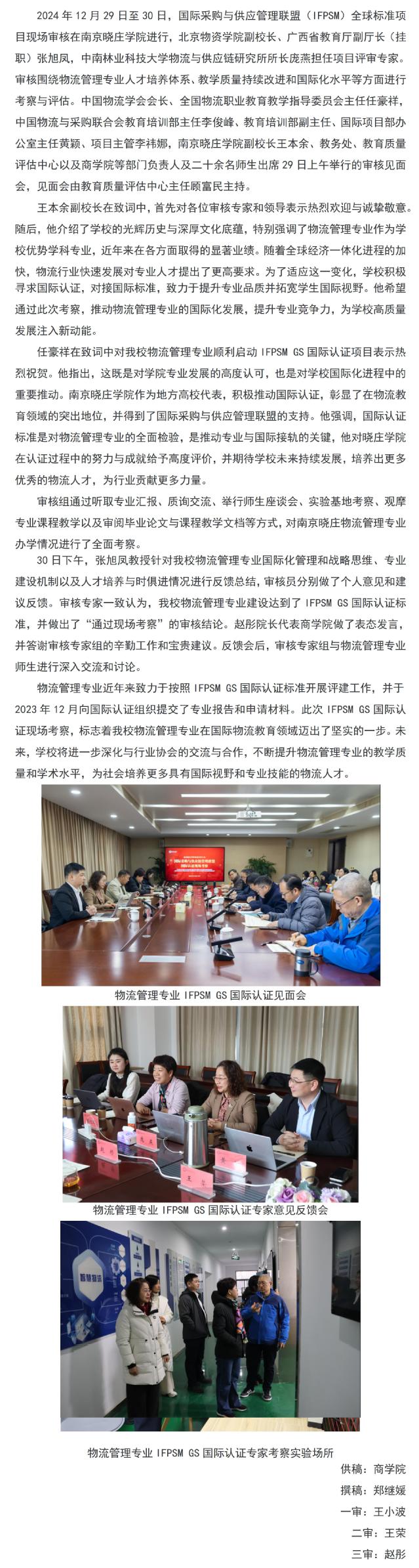 beat365官方网站物流管理专业完成IFPSM GS专业认证现场审核